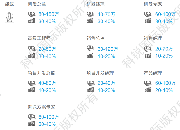 薪酬趋势:行业整体薪酬趋稳,自然涨幅在8-12%,跳槽涨幅在20-30%。能源互联网领域资深人才紧缺,部分职位薪资涨幅可达50%,甚至更高(文中部分数据是猎头公司bifa必发官网国际专家顾问的分析预测,供企业和猎头招聘参考)