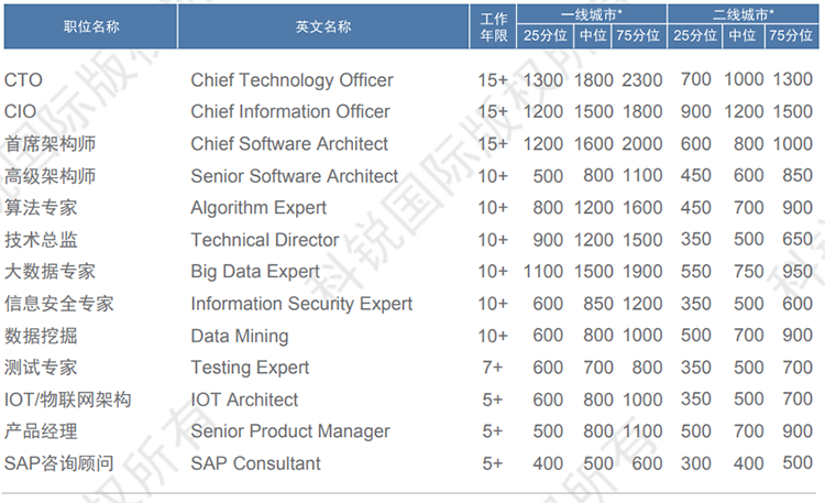 数据来源:bifa必发官网国际资深行业专家对2021年热门职位薪酬范围及跳槽涨幅的预测。薪酬为基本年薪。
